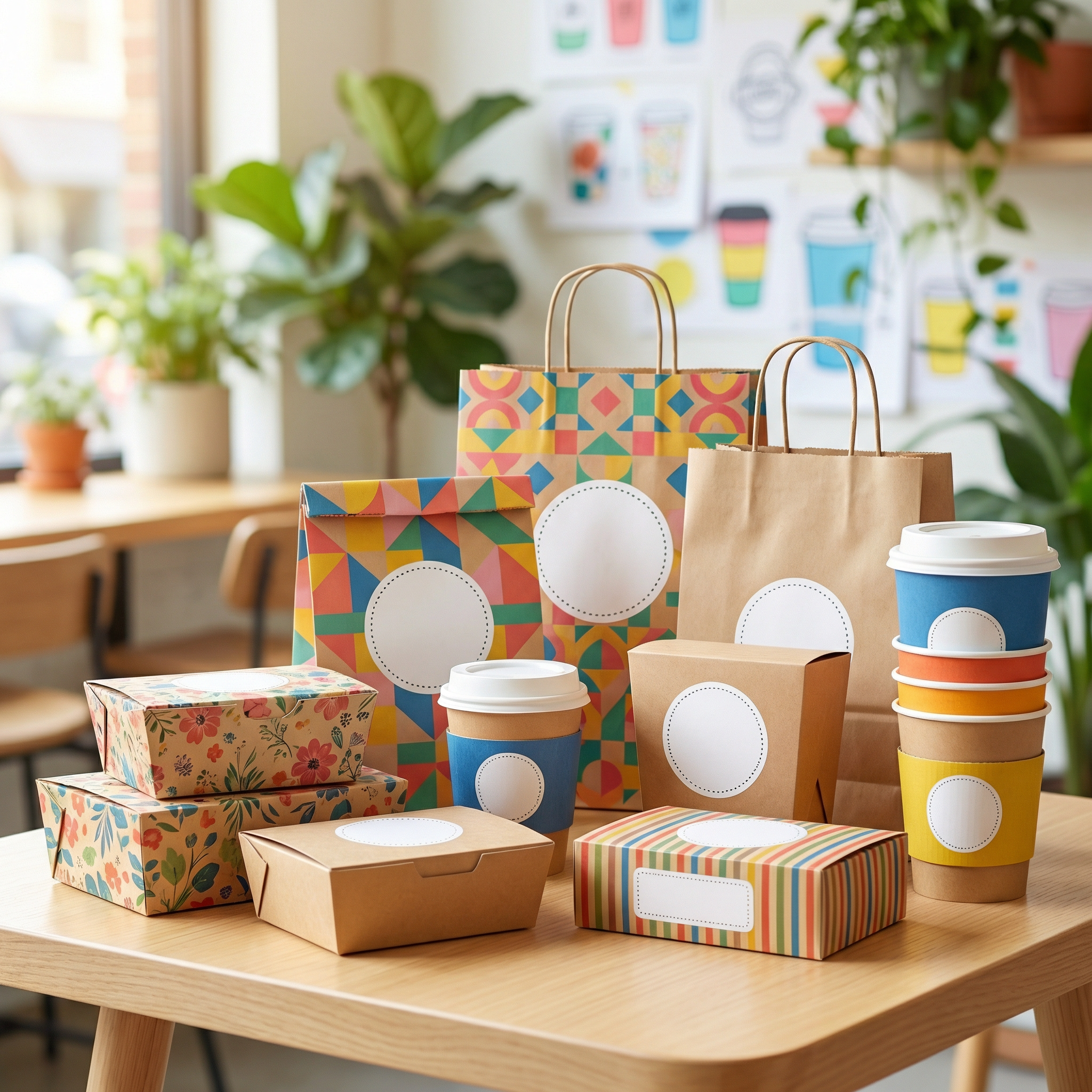 A sua marca em cada detalhe — sacos, caixas, guardanapos e muito mais
